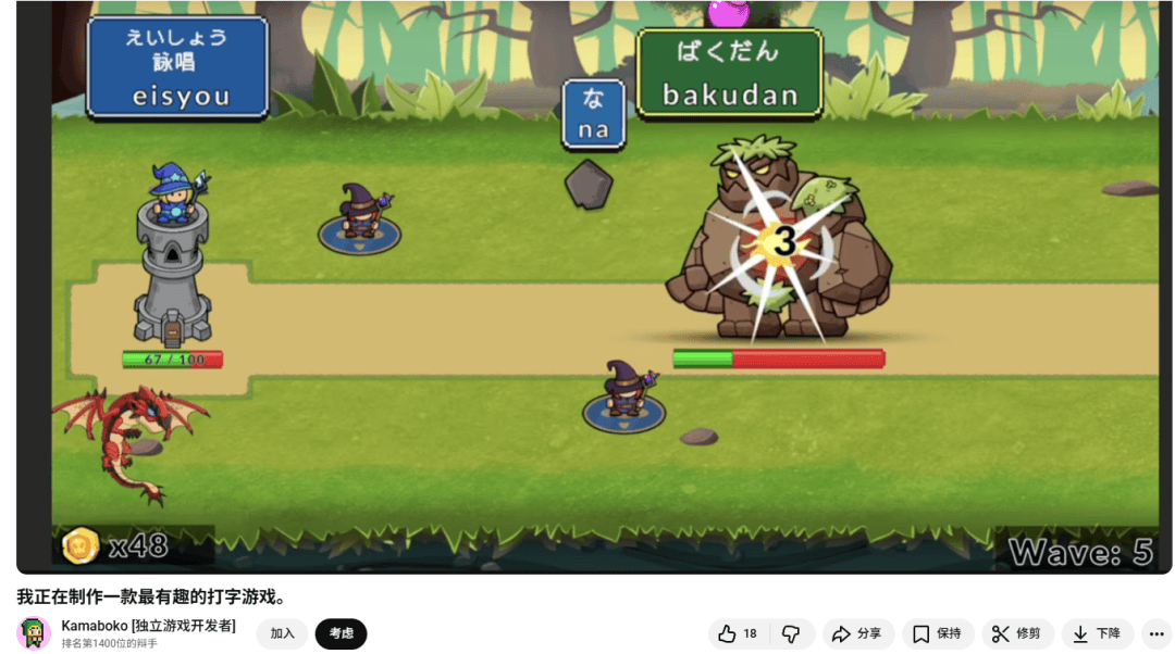 一位ID为“Kamaboko”的日本作者除了自己开发游戏外,还是一名YouTube上的视频作者,平时喜欢将自己开发游戏的流程和进度做成视频向粉丝同步。