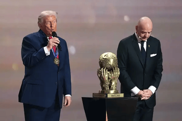 2025年12月6日凌晨,2026美加墨世界杯抽签仪式在美国华盛顿进行。在世界杯抽签正式开始前,国际足联官方宣布,向美国总统特朗普颁发首届国际足联和平奖,国际足联主席因凡蒂诺为其颁奖。