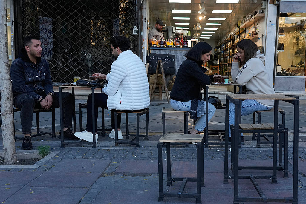 当地时间2026年3月30日,伊朗德黑兰,人们坐在市中心一家咖啡馆的户外用餐区。视觉中国 图