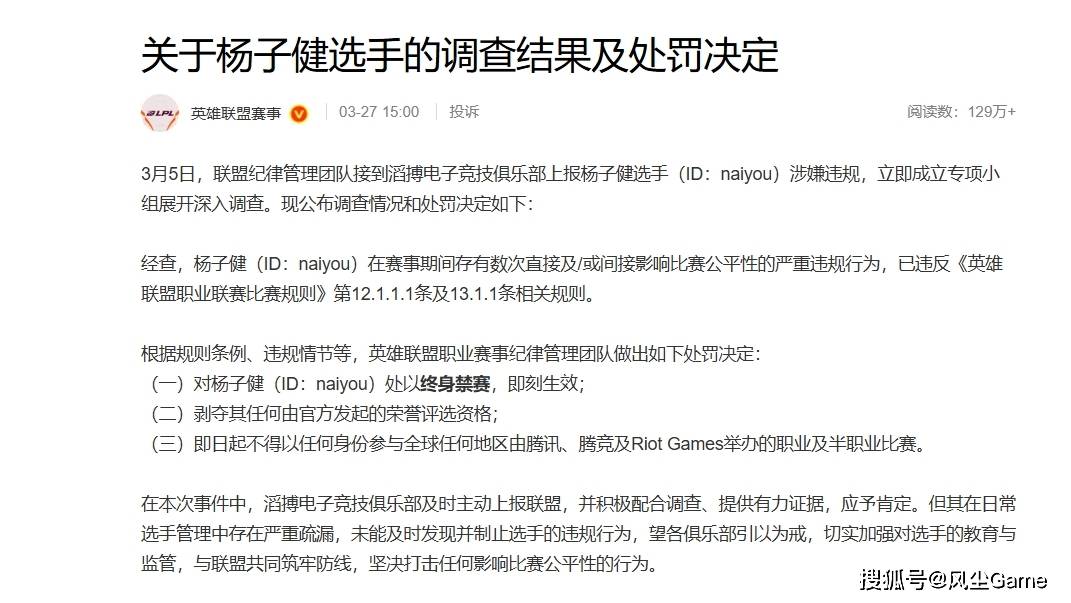 LPL第二赛段,再有一周就开赛了,官方在近日正式公布了,对滔搏打野奶油的处罚结果,据调查奶油在赛事期间,有数次直接、间接影响比赛公平的假赛行为,也就是说他登上LPL联赛后,不止一次当众打过假赛,还像银河一样,给假赛庄家们提供比赛情报,比如训练赛的BP这一类。