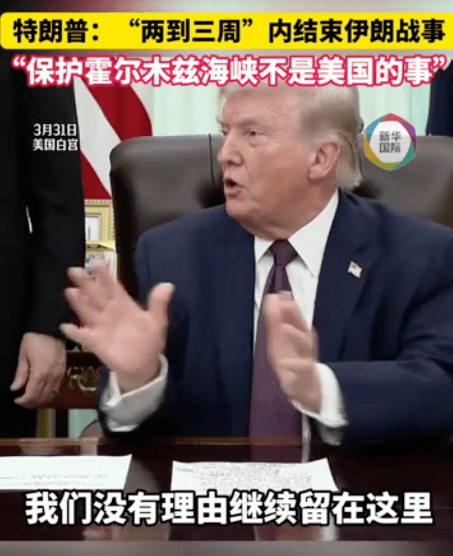 特朗普3月31日在白宫对记者说:“我会说两周内,也许两周,也许三周,我们会离开,因为我们没有理由做这件事。”