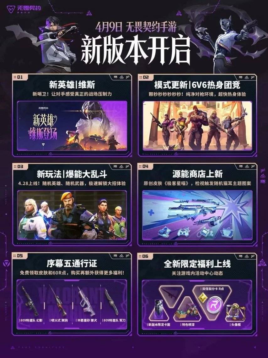 《无畏契约》手游4月9日新版本上线。新哨位维斯登场,团队竞技玩法升级,五一前爆能大乱斗开启,源能商店皮肤上新。