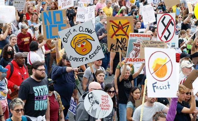 这场名为“不要国王”的全国性示威,像野火一样席卷了全美50个州。超过3100场集会同时举行,各大城市的街头被抗议人群塞得水泄不通。初步统计,参与人数突破了惊人的900万!这绝对能载入美国建国以来的抗议史册。