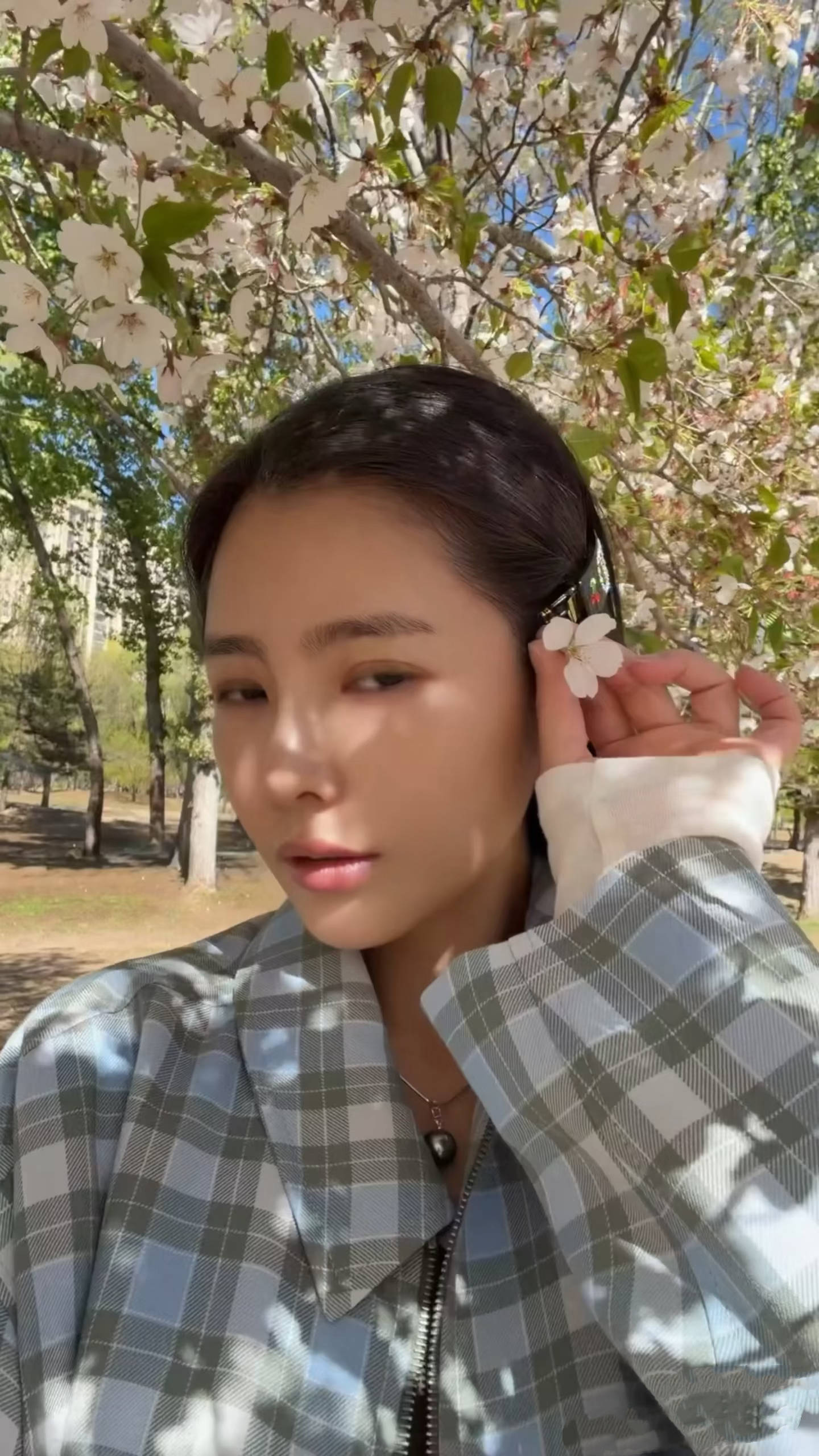 用王灿的话说,她和婆婆既是婆媳、也是朋友。王灿挽着婆婆的手臂、在樱花树下拍照,这个画面美极了。