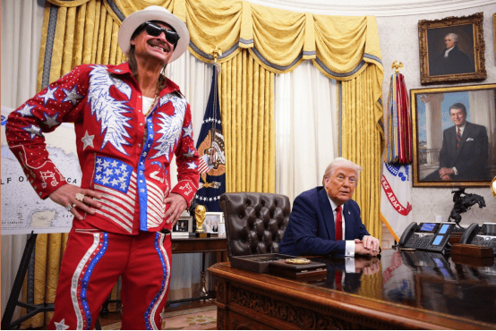 美国歌手“摇滚小子”(左)与美国总统特朗普 资料图片